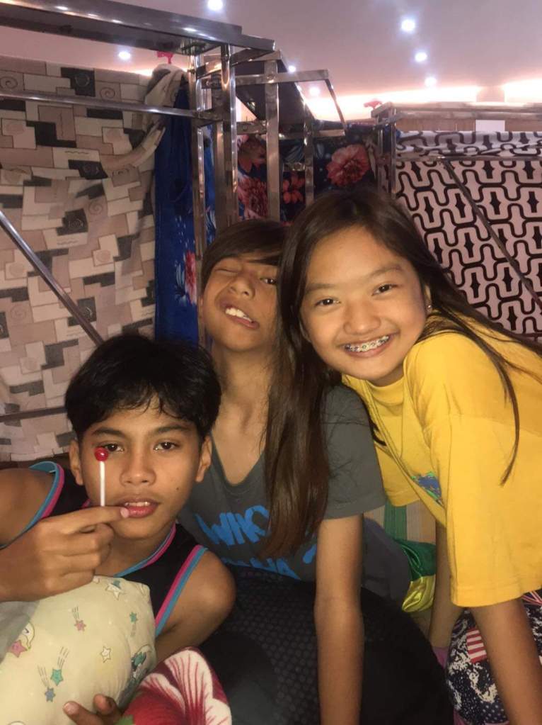 I go along with my siblings. No awkwardness, so much love, and jokes. We fought but we always have a way to be okay again. My older sisters are Kim, who is now working and turning 18 this month. Jasmine, she is pretty quiet. My younger siblings are Ben, the best soccer player in his class. Maggie, the most innocent, she obeys the people around her.